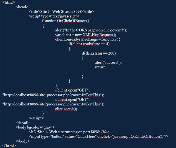 The code for each is as below: cors.php – Site 1 on port 8098 accessible via url: http://localhost:8098/cors.php