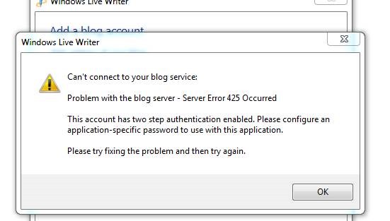 I use 2 factor authentication for my WordPress blog login. So, when I tried setting up Window Live Writer as my local WordPress blog editor I ran into the following error: